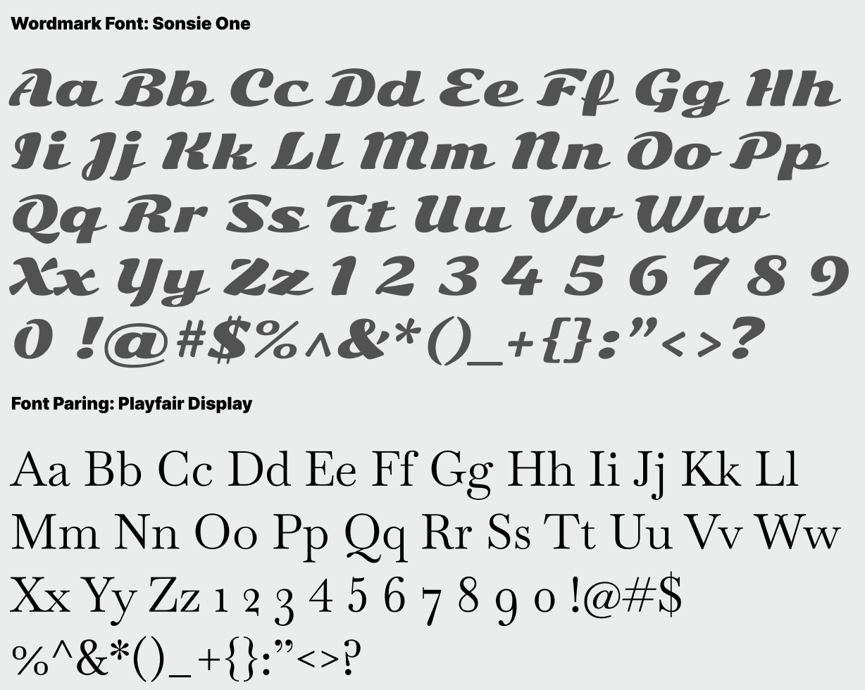 I selected Sonsie One as my primary typeface and Playfair Display as the secondary, choosing both from Google Fonts for their complementary character and visual balance.