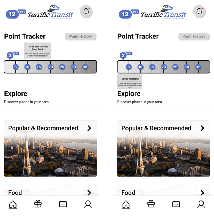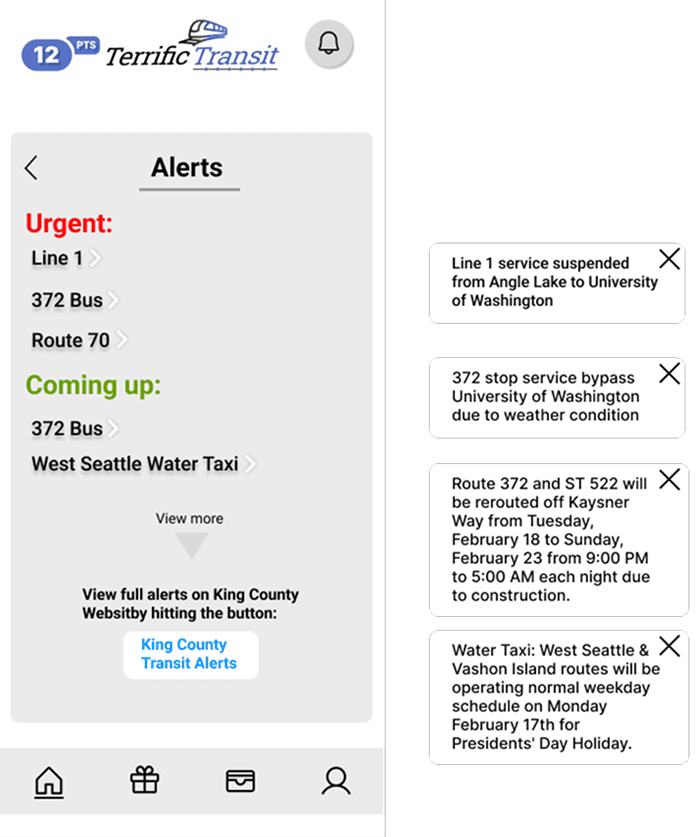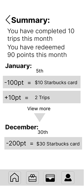 This rewards system addresses a main concern among our user responses: price. It makes public transportation an attractive investment for people who frequently travel and pay for other transportation passes. Effectively combining multiple methods of travel, this system creates an ecosystem of affordable transportation across Seattle and neighboring cities/districts.